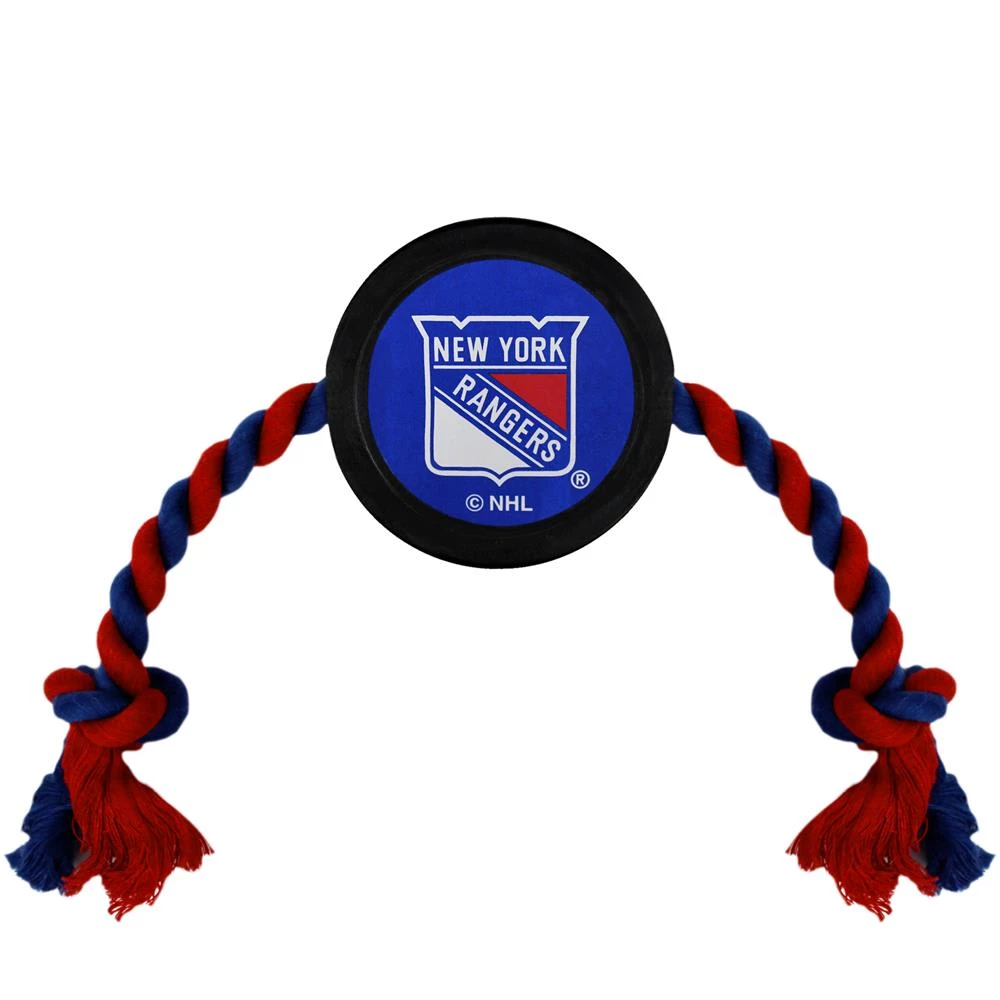 Get your furry friend ready for gameday with the Pets First NHL Hockey Puck Rope Dog Toy. Shaped like a hockey puck with a printed team logo, this toy is made of rubber and has a twisted, knotted rope through it in your pup’s favorite team’s colors. The team-spirited rope provides you or another furry friend with a better grip during an exciting game of tug-o-war. Not only will your pup enjoy playing with this faux hockey puck, but the rubber and rope materials will help scrape away plaque and tartar while he plays!