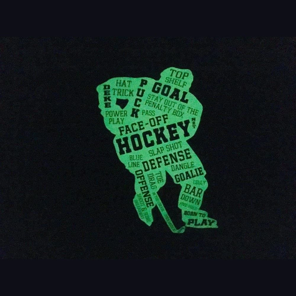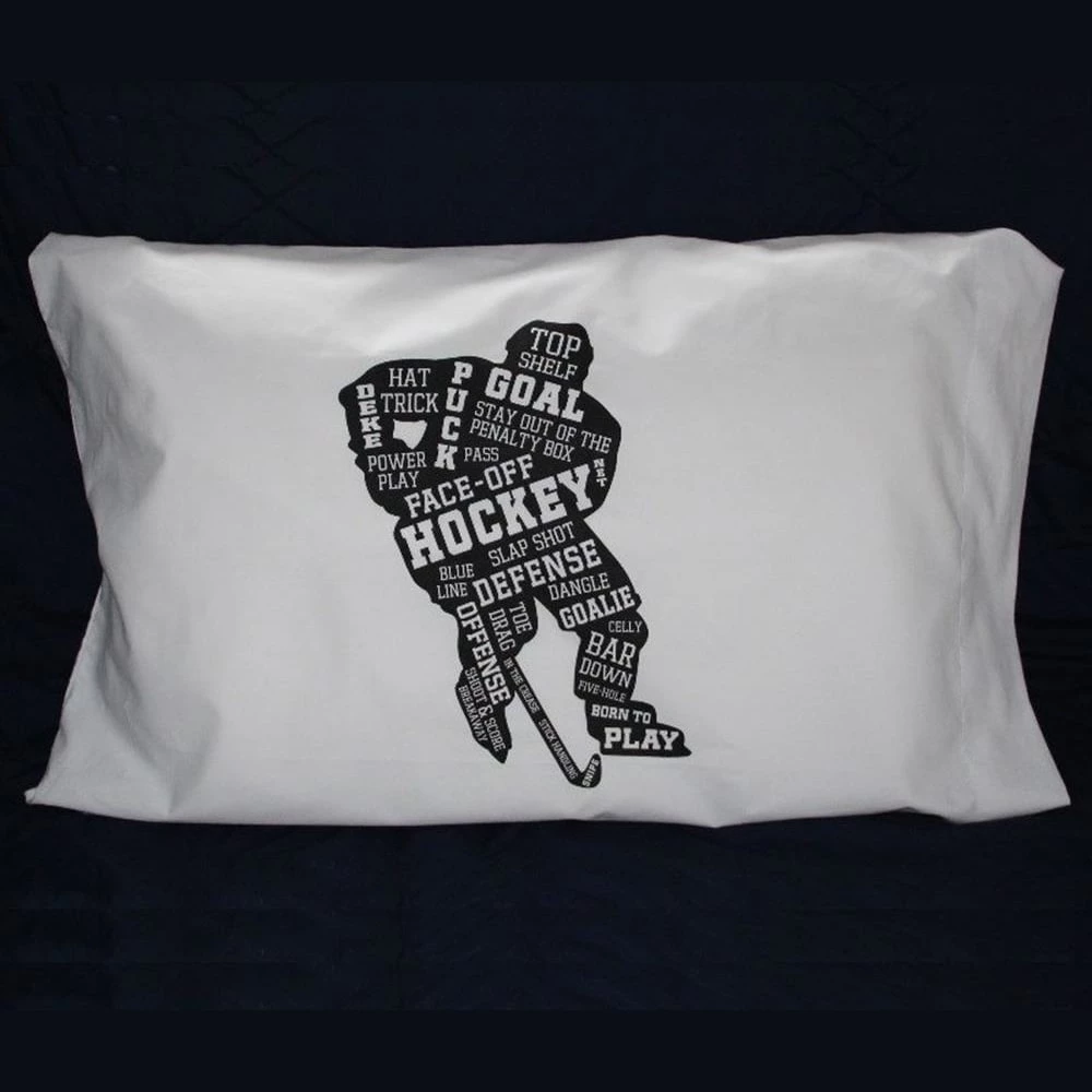 This unique design glows in the dark and will add the perfect hockey touch to any bedding. Great for gift giving! Wouldn’t your hockey player love this? This is printed in clear, so just appears as a white pillowcase during the day and glows beautifully at night!