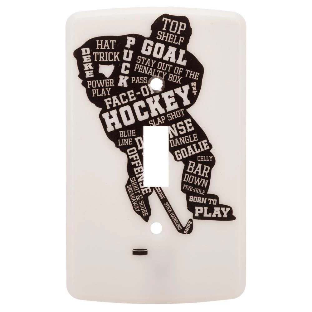 This glow in the dark Player Light Switch Cover would be a great gift idea for your little hockey fan. Instead of plugging in a night light, use this light switch cover to help them dream about scoring goals!Â