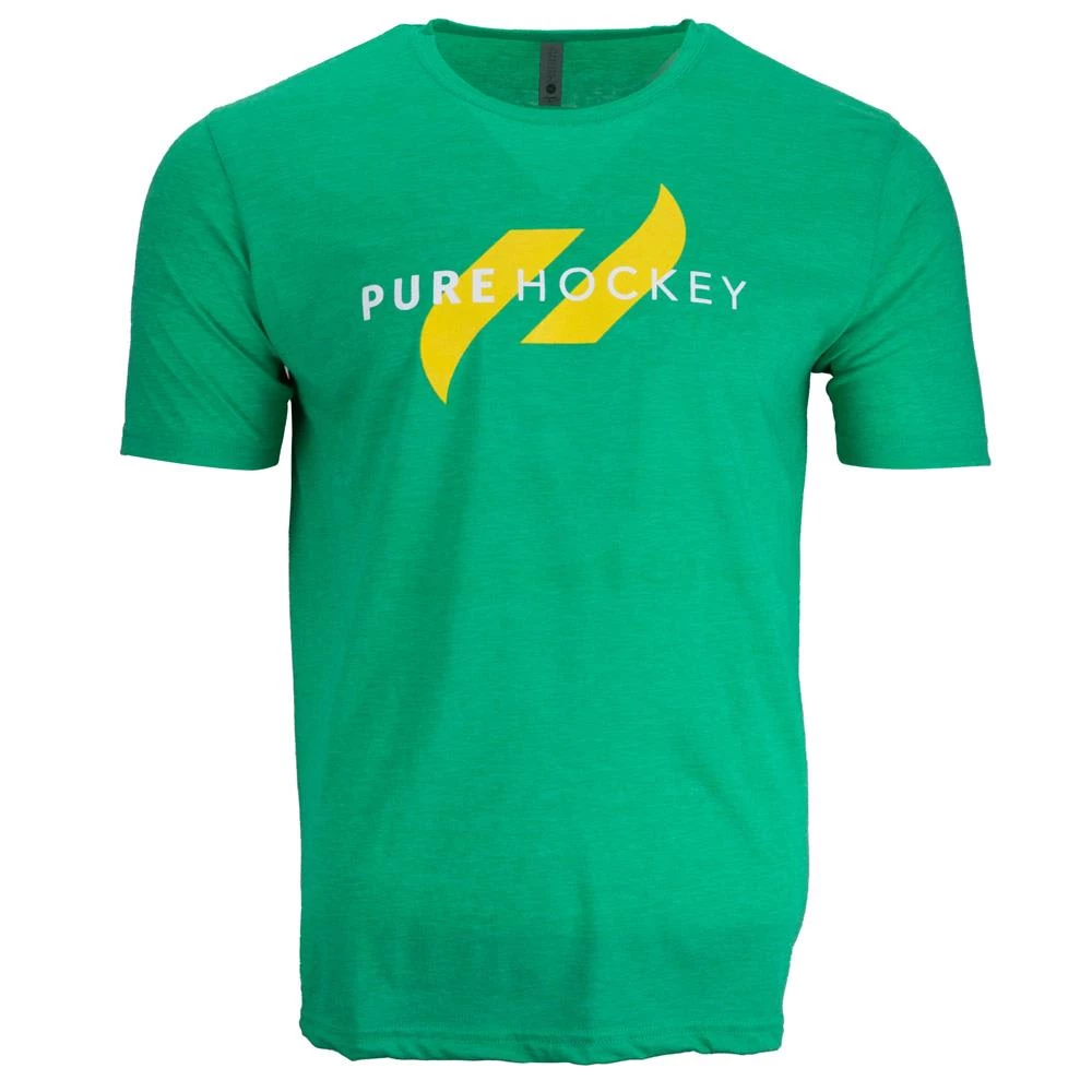 The new Pure Hockey Classic Tee 2.0 is here! Our Classic Tee that many have come to know for super soft comfort and lightweight has been updated with an all new graphic that features a large Pure Hockey logo silhouette in a variety of stylish color options.ย This is the most comfortable shirt we offer, and you wonโt be disappointed with the feel or quality. The ultra-light and super-soft material is the heart of this shirt and we know youโll love the experience every time you throw one on. This shirt is perfect for the rink, the gym, working on your skills off-ice, or just about anywhere!