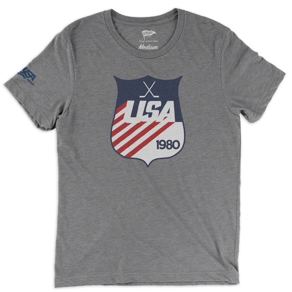 Adorned with an authentic 1980 USA Hockeyâ„¢ team shield, our tee was crafted with the intention of being the softest shirt in your lineup. It’s cut for a modern fit and printed with inks that actually blend into the fabrics giving it more character with every wash.